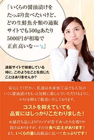 - 【気兼ねなく食べられるからお腹も心も大満足】通販サイトの相場が高いなと思ったことはありませんか。いくらしょうゆ漬をもっと気軽に楽しんでもらいたいという思いから、コストを抑えて販売しております。訳ありではございますが、その分「食べ応えがあり」、「量もたっぷり」だから、気兼ねなく贅沢にいくらを使って、お腹いっぱい食べる幸せを味わってみてはいかがでしょうか。