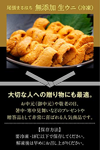 - 【両親や知人に喜んでもらいたい】ミョウバン不使用で無添加だから、渋みが無く甘みも減らないので、口の中に入れた瞬間うに本来の濃厚でクリーミーな甘みがとろけるように広がります。お世話になっている知人や友人、両親などのプレゼント用にいかがですか。