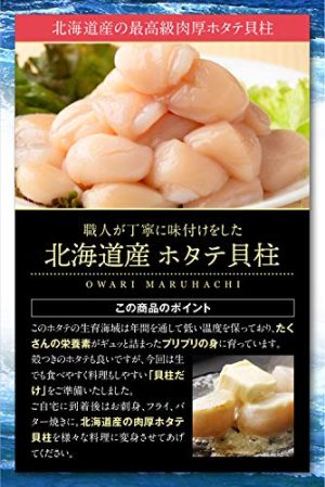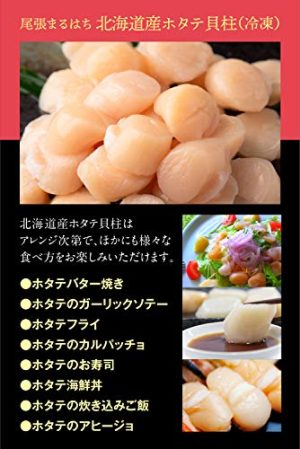 - 【規格・サイズ】ホタテ貝(貝柱)原材料名:ホタテ貝【内容量】2kg (1kg x 2P) 【原産地】北海道 【賞味期限】解凍日後1週間(解凍後はなるべくお早めにお召し上がり下さい)※本品は北海道の新鮮なホタテ貝を精選しトンネルフリーザーで急速冷凍したものです。そのまま解凍してご利用頂けます。【お召し上がり方】美味しい食べ方は自然解凍して、お刺身、フライ、グラタン、バター焼き、ホタテご飯、その他お吸い物等、色々な料理にお使い下さい。【使用方法】解凍する時はできるだけ低い温度でゆっくり解凍し半解凍になったら直ちに調理して下さい。一度解凍したものを再び冷凍しますと品質が変わる事がありますので、ご注意下さい。