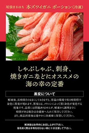 詳細: 多くの方に愛される海の幸「蟹」 海の幸の定番として多くの方に愛される「蟹」。蟹は、毛ガニ・タラバガニ・ズワイガニなど種類が豊富です。その中でも蟹身の量と味、共に太鼓判が押されるのがズワイガニです。そんなズワイガニは国内での流通も多いので、誰もがどこかで1度は味わった事のある蟹でしょう。 ズワイガニの旬は日本海では冬場ですが、北の海域では秋から春にかけて。西の海域では秋から冬にかけて。時期がずれているので美味しいズワイガニを求めて旅行に出かける人もいる程です。 さらに、海外で水揚げされたズワイガニも日本へ輸入されており、ここ数年、食する頻度は確実に増えてきています。 海の幸の中でも特にファンの多いタラバガニの足を、剥き身にしてお届けするのが尾張まるはちの「本ズワイガニ足生剥き身1kg」です。 大人も子どもも関係なく人気の蟹の足は、美味しいけれど剥くのが大変ですが、キレイに剥き身になっていればいくらあっても足りないくらいです。 料理の幅も広がる「剥き身本ズワイガニ」 蟹は和洋中どんな料理にも合うので料理するのも楽しくなります。 ・剥き身をそのままお鍋のメイン食材として ・コロッケやグラタンの具に使えばちょっとオシャレな食卓に ・チャーハンやスープに使えば育ち盛りの子どもも大満足 蟹が食卓に並べばみんなが笑顔になり、いつもの食卓が一気に華やぎます。 鮮度と旨味をしっかりと閉じ込めるために急速冷凍された状態で届きますので、自然解凍してから調理を始めてください。 冷凍では約1ヶ月、冷蔵では2日が保存期間となります。 お中元・お歳暮やお祝い事にも ご家庭で購入して家族みんなで美味しくいただくのも良いですが、お世話になった方や仲の良いお友達へのギフトとしても人気の高いズワイガニ。 お礼の言葉とともに、蟹の剥き身と共にセットでお届けしてみてはいかがでしょうか? 繊細で上品かつジューシーな食感を楽しむことができるズワイガニ。噛めば噛むほど旨味がどんどん増してきて本物の味を堪能できます。 焼いてよし、鍋でもよし、もちろんそのままでもお楽しみいただけます。 ぜひこの触感と旨味をご体験ください。