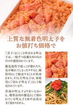 詳細: 無着色の辛子明太子です。本場福岡で加工された業務用「切れ子」1kgを今回は特別価格にて、ご提供させていただきます。 明太子の切れ子とは明太子の製品を作る工程で皮の破れ・切れ・型崩れとなったもので、主に業務用・家庭用等で使われております。 形が悪いだけで味・品質は、一級品の辛子明太子と遜色ありません。 ちょっとした料理やおつまみとして召し上がる事ができ家庭用として、あつあつご飯に乗せたり、おにぎり、パスタ、チーズ明太等でお召し上がり下さい。 参考価格及び価格に表示されているセール価格との比較対照価格は、最近相当期間にわたって販売されていた価格を表示しています。