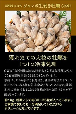 - 【外出しなくてもできるプチ贅沢】OWARIの牡蠣は身が白く、つやがあり、こんもり盛り上がって、弾力があるのでおいしい。また、獲れたての大粒の牡蠣を1つ1つ冷凍処理しているため、本来の味を損ねることなく皆様の元へと届けることができます。素材にこだわったOWARIの牡蠣をご家庭でどうぞ。